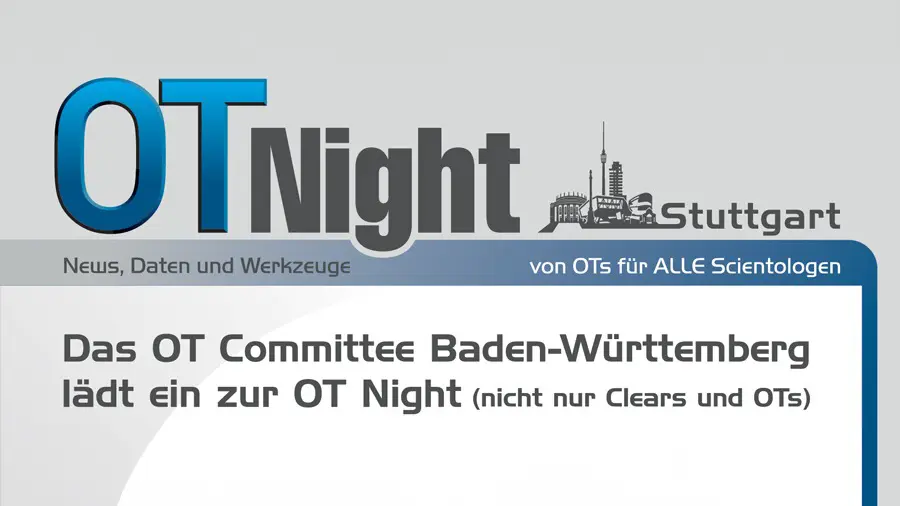 OT Night in Stuttgart Das OT Committee Baden-Württemberg lädt ein zur OT Night für ALLE Scientologen (nicht nur Clears und OTs) Wie schaffst du es auf jeden Fall die Brücke hinauf? Mit unserem Vortragsredner Oli Miller (Neuer OT VIII) Was ist die richtige Einstellung? Was sind die erfolgreichen Aktionen? Sei dabei an diesem Theta-Abend Eintritt […]